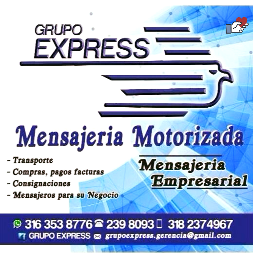 Somos Grupo Express Buga, una empresa de transporte y mensajería motorizada creada para darle a nuestros clientes la seguridad en sus desplazamientos y domicilios. Trabajamos con un equipo humano amable y calificado, que se esfuerza diariamente por cumplir y superar las expectativas de todos los clientes que solicitan nuestros servicios; gracias a esto, muchas personas nos recomiendan en el sector. Transporte puerta a puerta. Domicilios. Servicio de compra. Consignaciones. Encomiendas. Tramites. Pago de facturas. Servicio de viaje en automovil. Servicio de camioneta. Mensajería empresarial